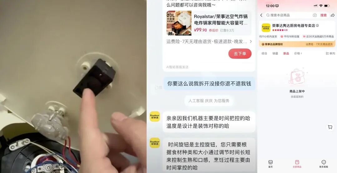 6.虚假宣传?网友反映荣事达空气炸锅温度旋钮“形同虚设”,有商家称只是“装饰品”